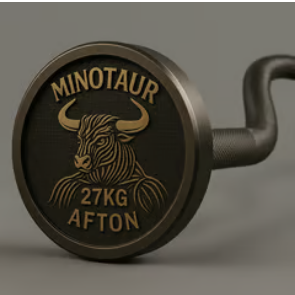 The AFTON Minotaur is a 27KG cambered squat bar engineered to throw you off balance — on purpose. Its unique lower-loading design challenges stability, fires up posterior chains, and improves positioning in your squat, bench, or good mornings.