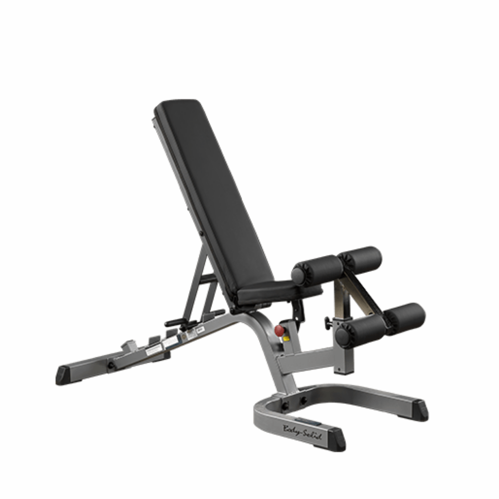 Without a doubt, the cornerstone of all strength training equipment is the Flat/Incline/Decline Bench and nothing comes close to the GFID71. The heavy-duty 2″ x 3″ steel frame can easily handle a load capacity of 600 Lbs. The back and seat pads lock into eight positions to align your body for perfect posture in all your exercises while the ultra-thick DuraFirm upholstery supports you comfortably through the most intense workouts. Lock your legs in the T-Bar Leg Hold Down featuring oversize rollers for extra comfort and stability while you perform upper and lower abdominal exercises as well as incline and decline strength training. Convenient transport wheels let you move the GFID71 effortlessly in and out of any rack for the ultimate in versatility.