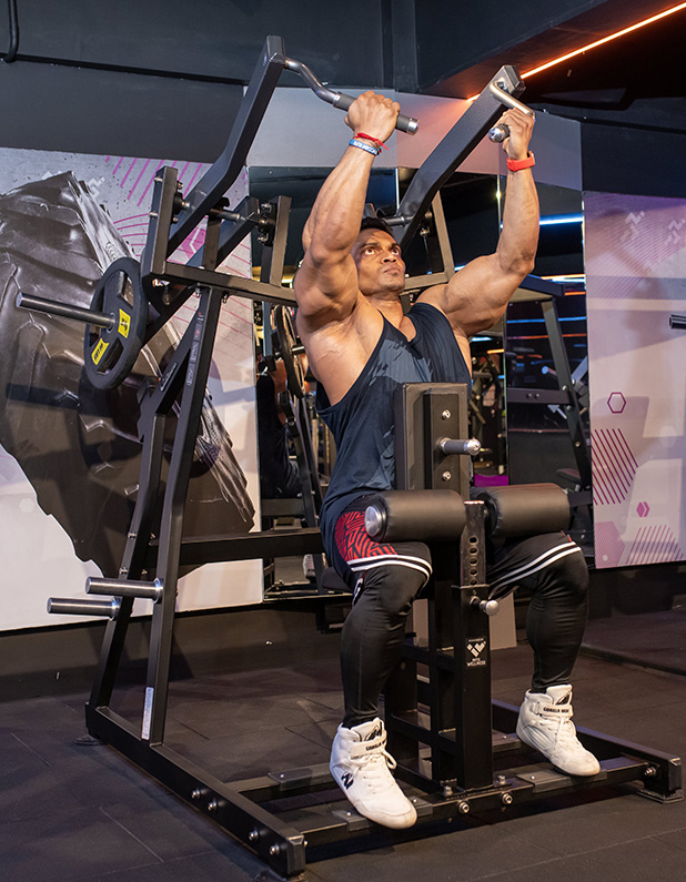This is a compound exercise where you can work on the middle and lower trapezius, major and minor rhomboids, latissimus dorsi, teres major, posterior deltoid, infraspinatus, teres minor, sternal (lower) pectoralis major muscles. In real life, this exercise helps in making the lifting up of our body onto a ledge easier or if you’re in a sporting position and want to pull somebody down then this exercise enhances strength in the targeted muscles. Single hand movements on this machine engage the core muscles while performing the exercise helping in lateral stability through the spine and also in rotation. Alternate action performed on the machine also helps in stabilizing the core muscles.