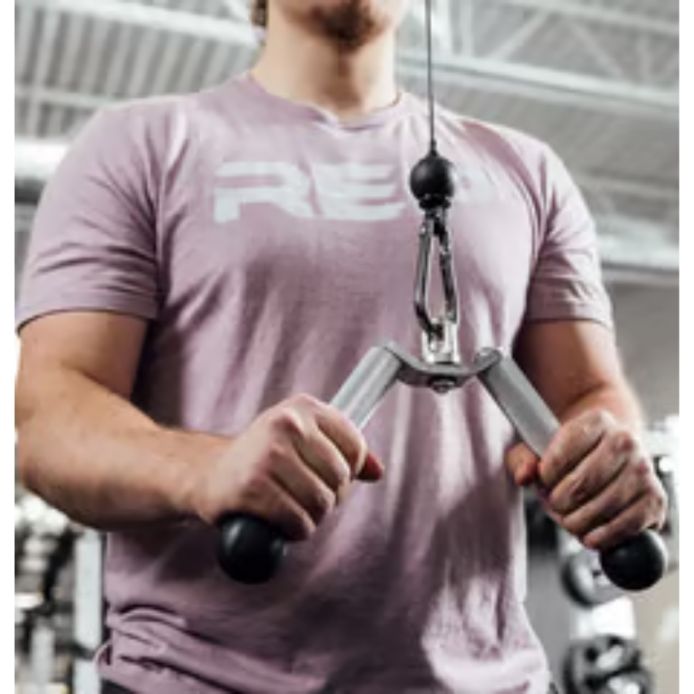Meet the newest innovation in cable machine attachments, the REP® x Kleva Built® tricep pushdown attachment. This high-quality, heavy-duty tricep attachment is for commercial and elite home gym setups where maximizing cable training versatility and longevity is a priority. This equipment combines cutting-edge design, precise ergonomics, high-quality materials, and premium performance.