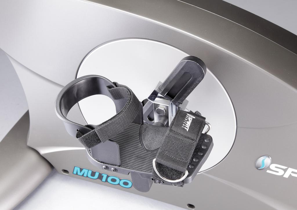 The MU100 addresses lower-body conditioning with advanced options for optimal knee positioning. Clinicians may input desired knee flexion angles and the software will suggest the pedal and the seat’s fore/aft position. Variables such as body symmetry and limb length can be taken into account for clinicians to finely tailor to every patient’s needs.