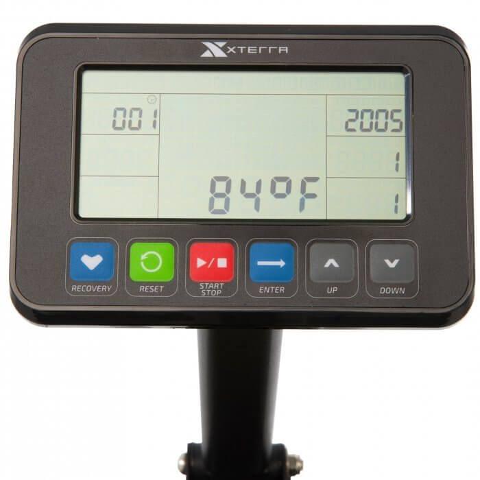 Large and easy to read 5.5” LCD console with height and angle adjustment includes motivating programmable modes to keep you involved, inspired, and reaching your goals. Performance is top-of-the-class with a smooth action dual aluminum rail system, convenient stand up design for storage, industrial strength handle strap, flex pedals with easy numbered adjustments, and durable XTERRA multi-bladed impeller for a water rowing experience second to none.